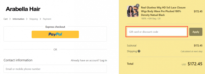 Add the copied code to the "Gift card or discount code" field on the checkout page. Get the new profitable total amount immediately after applying the code!