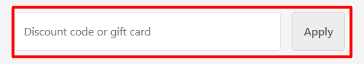 Put the saved promo code in the “Discount code or gift card” box and hit “Apply”.