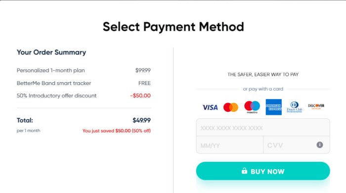 Apply Betterme saved promo code in the special field to keep your body in shape at a discounted price.