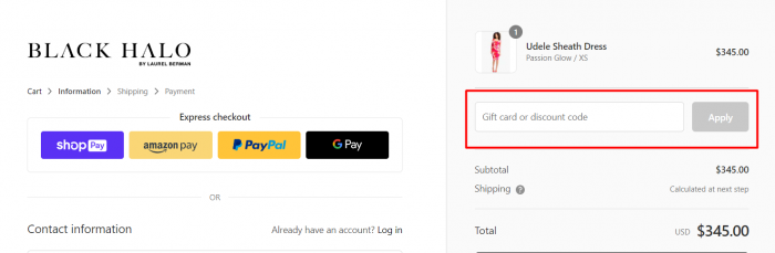 Find the "Gift card or discount code" field on the right side of the page. Add a unique code and apply it to your order to get a great deal!