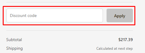 Paste the saved promo code in the “Discount code” box and press “Apply”.