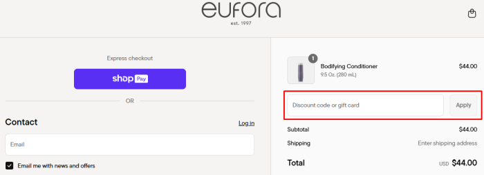 How to use a coupon code on Eufora?