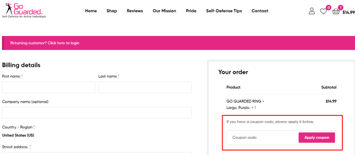 Paste the saved promo code in the “Coupon code” box and hit “Apply coupon”. Enjoy your run. Run smart and be a menace to whoever intends to harm you.