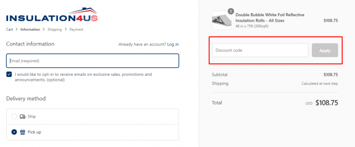 Find out the window "Discount Code", put your saved code before in. Click the link“Apply” and see carefully that now your total price for an order is less than.