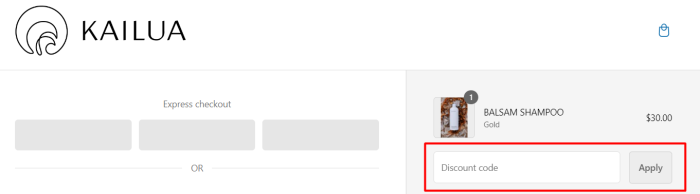 Place the saved promo code in the “Discount code” box and press “Apply”.