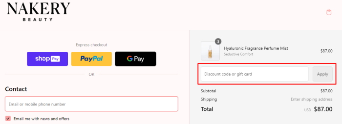 How to use a coupon code on Nakery Beauty?