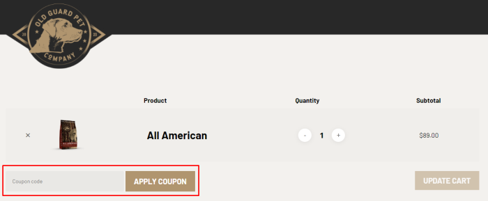 Enter the saved promotional code in the "Coupon code" box and hit the "Apply Coupon" button to check out your premium nutrition at a superb discount.