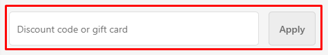 Put the saved promo code in the “Discount code or gift card” box and hit “Apply”.