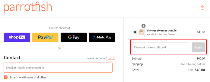 How to use a coupon code on Parrotfish?