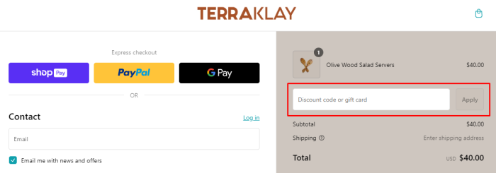 How to use a coupon code on TerraKlay?