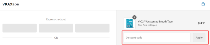 Place the saved promotional code in the “Discount code” box, and push “Apply” to wake up feeling good and having no headaches or dry mouth.