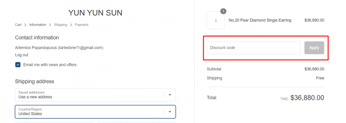 Save on the jewelry of your choice, select the YUN YUN SUN discount code, and save the code for later use.